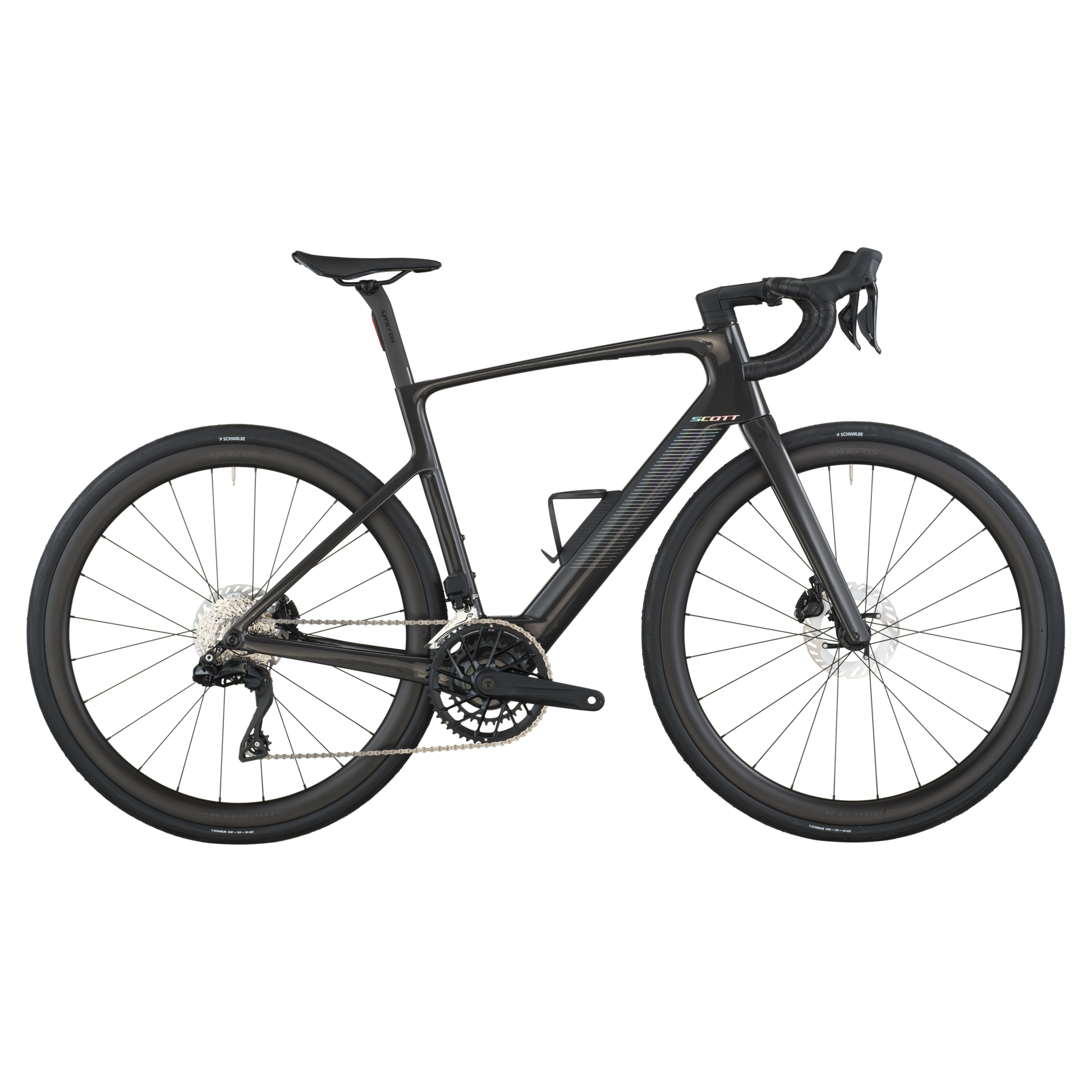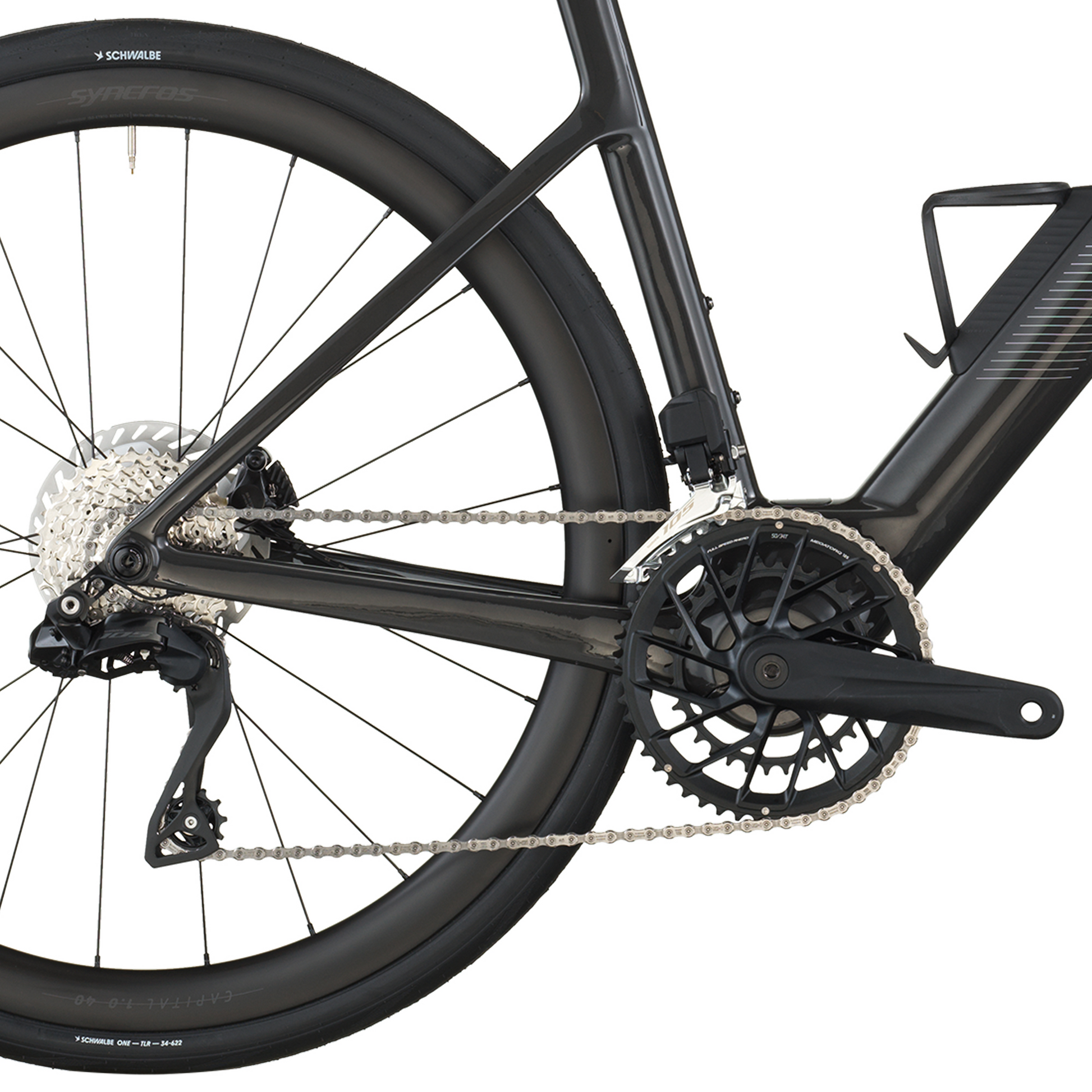 Equipamos a Fastlane 20 com câmbio eletrônico Shimano 105 Di2 2x, rodas versáteis e aerodinâmicas Syncros Capital 1.0 40 e pneus Schwalbe ONE para velocidade e confiabilidade onde quer que você pedale.