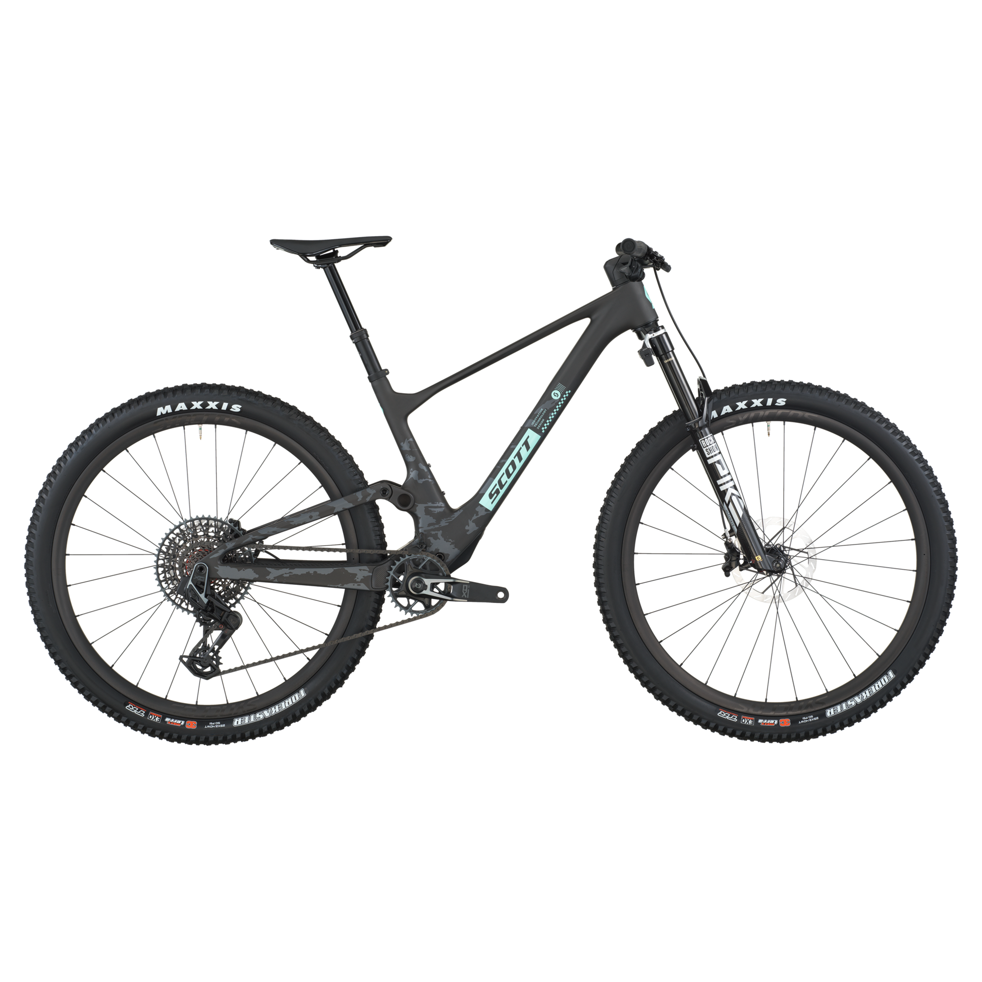 A Bicicleta SCOTT Spark 900 Evo tem RockShox Pike Ultimate Flight Attendant, Quadro em Carbono HMF e transmissão SRAM X0 AXS.
