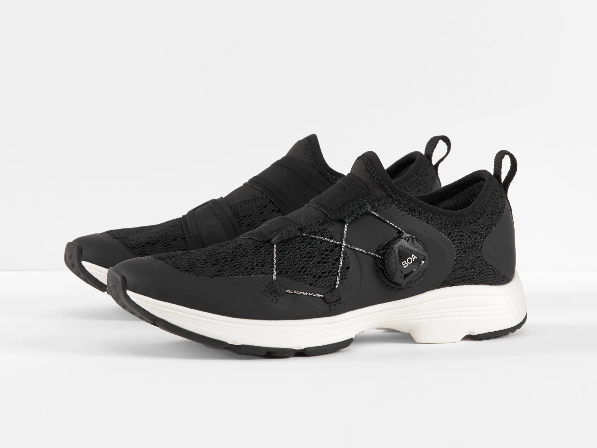 Um sapato de encaixe elegante concebido para performance na bicicleta estática e conforto durante as rotinas de exercício antes e após a sessão de treino.